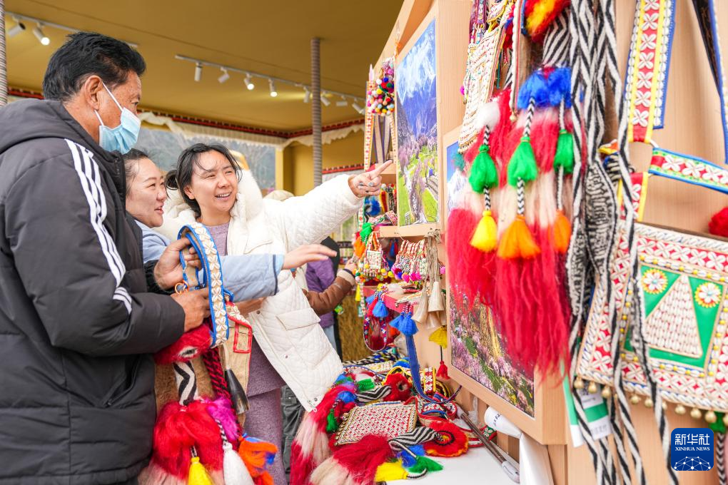4月3日,游客在林芝市工布公园选购当地特产。新华社记者 丁增尼达 摄