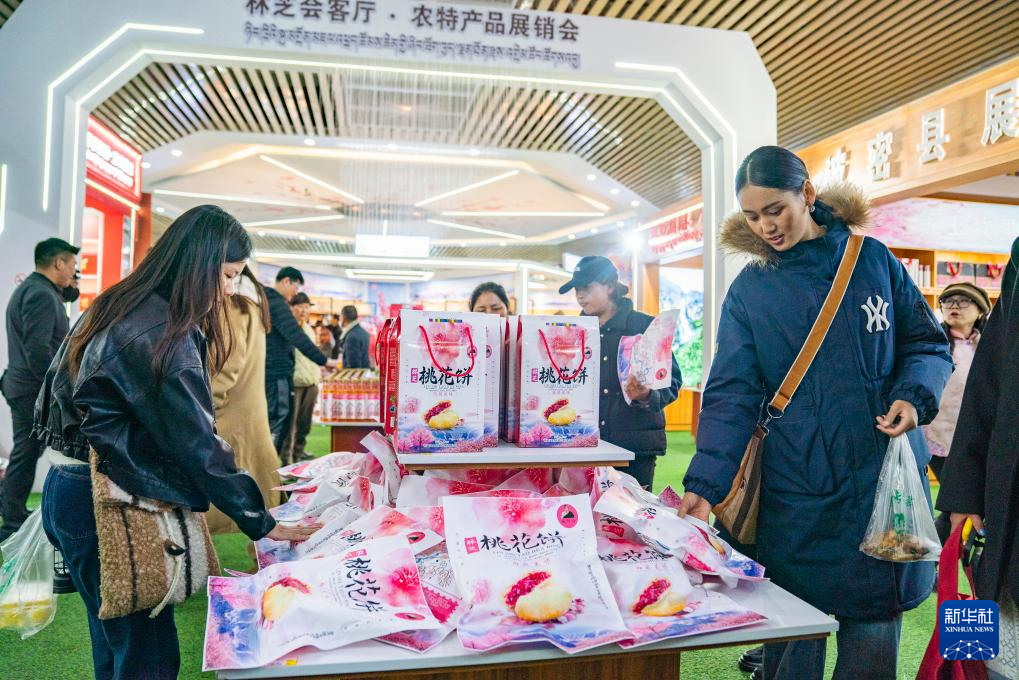4月3日,游客在林芝市工布公园选购桃花饼。新华社记者 丁增尼达 摄