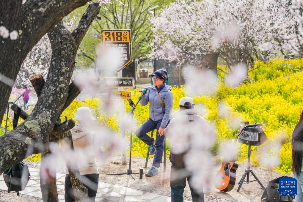 4月2日,游客在林芝市嘎拉村唱歌。新华社记者 丁增尼达 摄