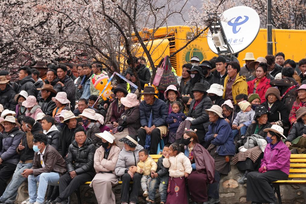 昌都市洛隆县第十一届俄西杏花文化旅游节开幕式现场的观众。新华社发 (格桑赤列摄)