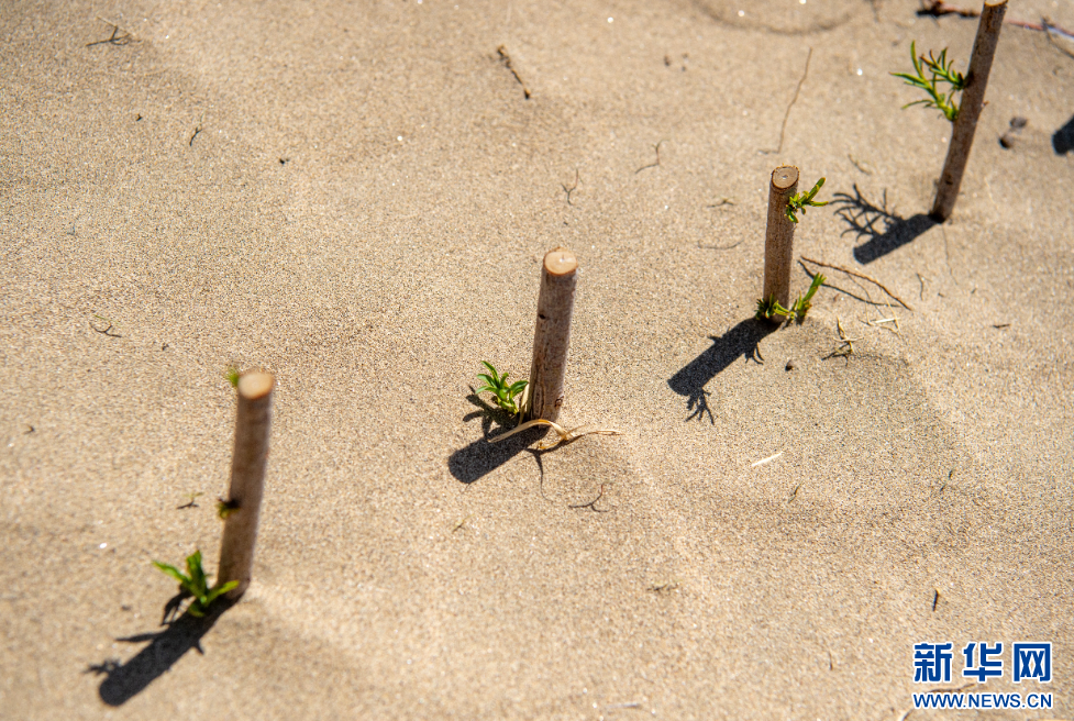图为拉萨南北山造林绿化(贡嘎段)西藏森拓雅公司造林片区拍摄的沙柳(4月24日摄)。新华网 旦增努布 摄