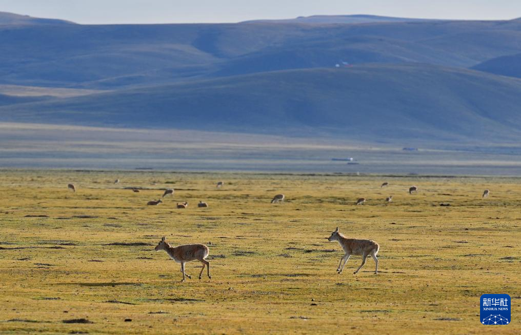 色林错国家级自然保护区那曲市申扎县片区里的藏羚羊(2024年8月26日摄)。新华社记者 张汝锋 摄