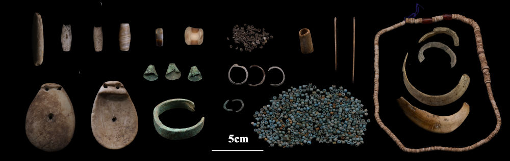玛不错遗址墓葬出土的饰品(资料照片)。新华社发(西藏自治区文物保护研究所供图)