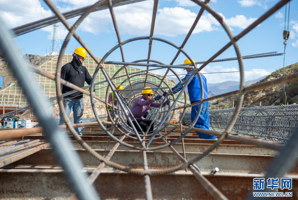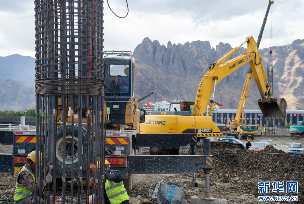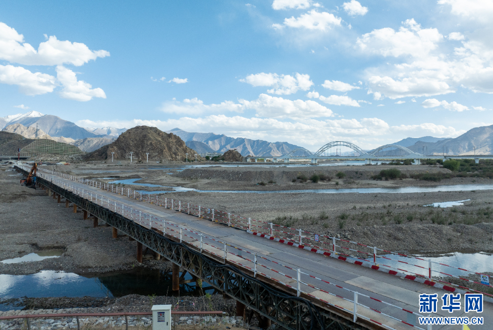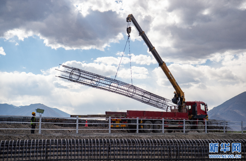 这是5月12日拍摄的拉萨高新大桥施工现场。新华网 旦增努布 摄