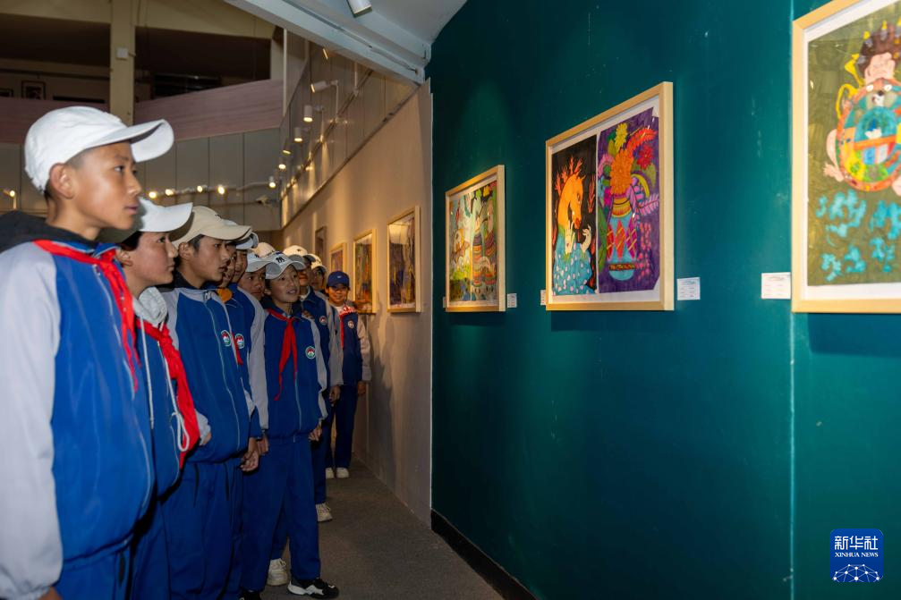 5月20日,在西藏自治区群艺馆,观众在启动仪式上参观中学生绘画作品展。新华社记者 旦增尼玛曲珠 摄