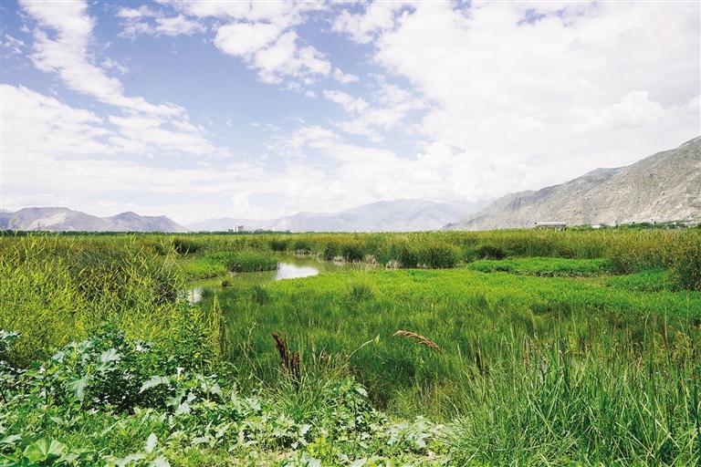 五月的拉萨,雨水湿润了整个大地。早晨的阳光透过层层云雾,洒在郁郁葱葱的拉鲁湿地上。她仿佛一位佳人,身披翠绿的薄纱,静静地伫立在那里,等待着人们与她在初夏撞个满怀。