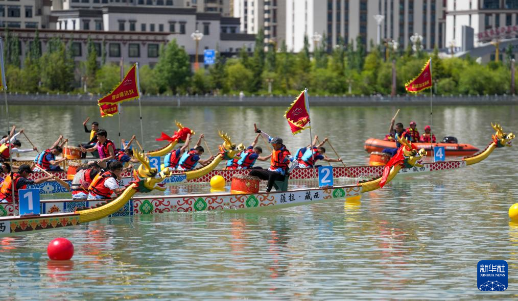 5月31日,参赛队伍在龙舟比赛中。新华社记者 晋美多吉 摄