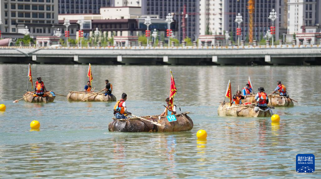 5月31日,参赛队伍在牛皮船比赛中。新华社记者 晋美多吉 摄