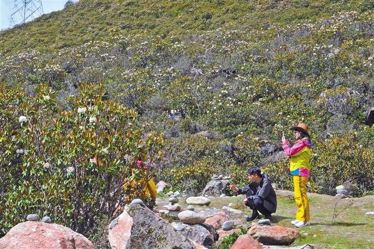 游客驻足拍摄杜鹃花。 谢筱纯 王珊 摄