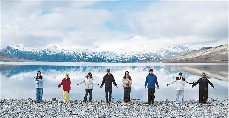 游客在崇巴雍错景区打卡拍照。 记者 旦增嘎瓦 摄