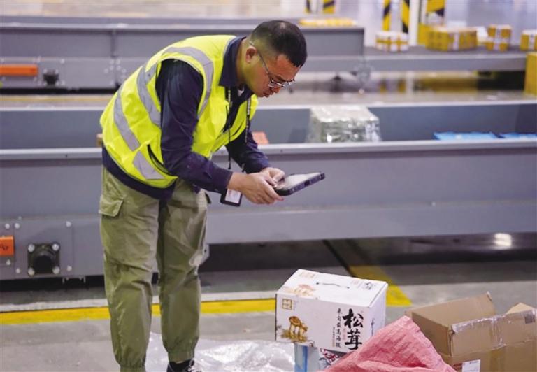 保障松茸运输现场。记者 张雪芳 摄