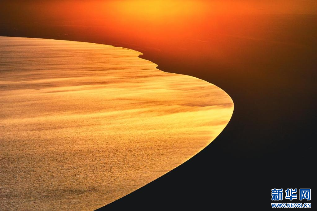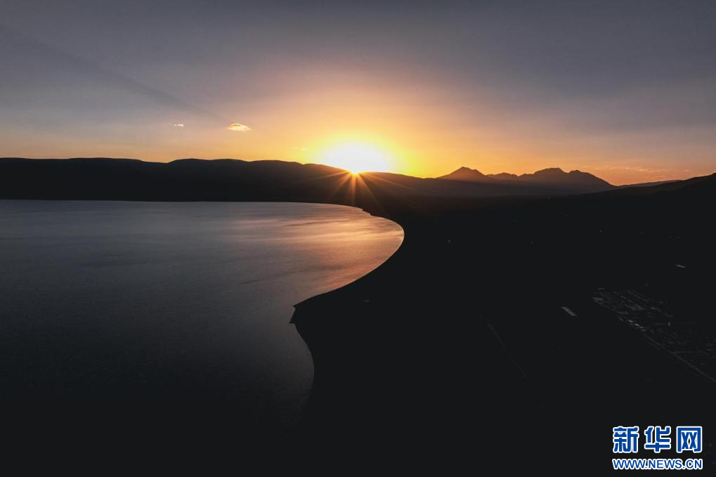 图为夕阳下的当惹雍错( 7月5日摄,无人机照片)。新华网发 车宇轩 摄