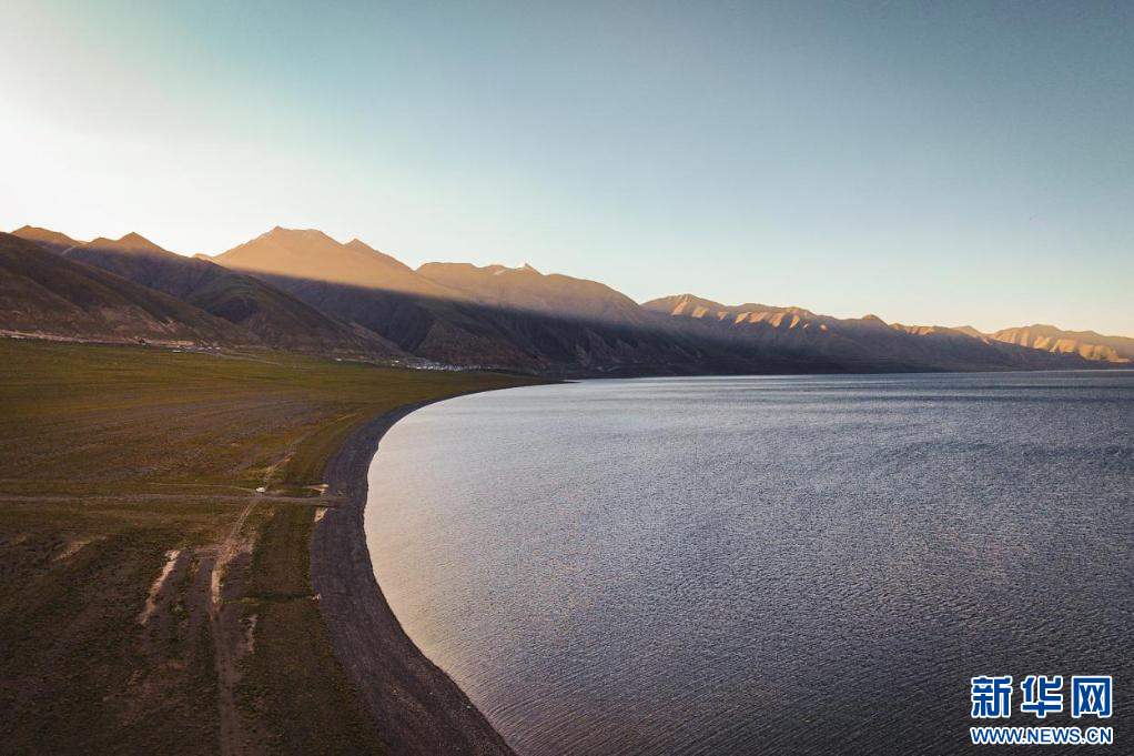 图为晨光照射下的当惹雍错(7月6日摄, 无人机照片)。新华网发 车宇轩 摄