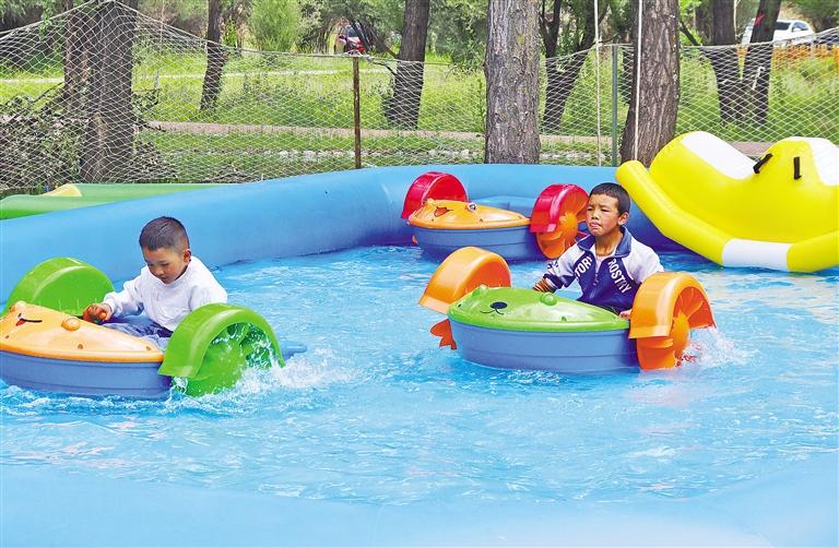 图为小朋友在林卡里玩水嬉戏。记者 旦增兰泽 摄