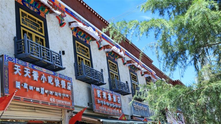 值得关注的是,此次修复及新建的商铺外立面特意采用传统藏式绘画工艺,选用新藏式风格,旨在弘扬独特的当地文化,使其在现代城市中展现新活力。通过外立面装饰改造形成统一风格后,老旧街区的藏式特色更加凸显。