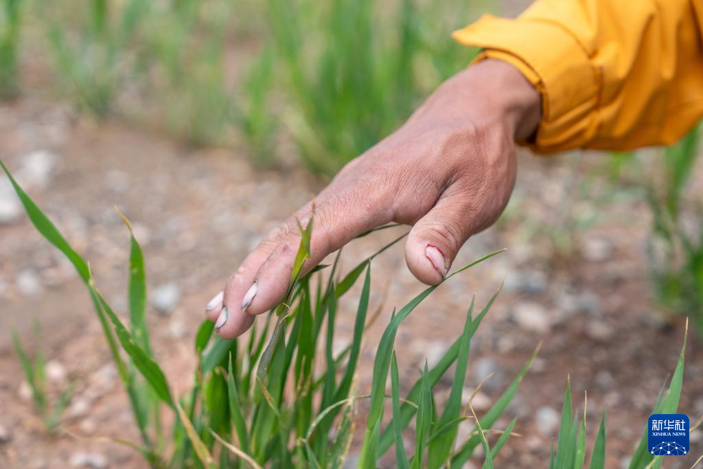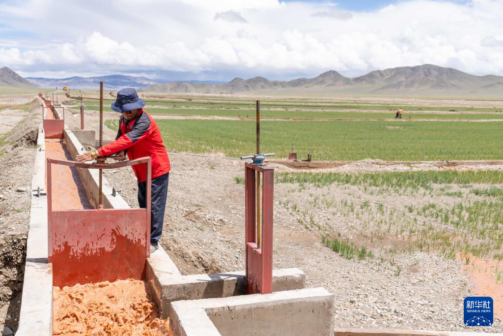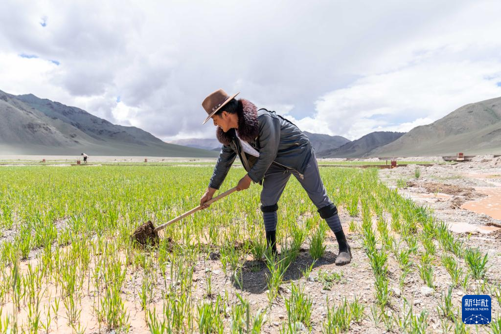 7月20日,西藏阿里地区革吉县文布当桑乡夏玛村村民嘎玛旺堆在人工种草基地工作。新华社记者 旦增尼玛曲珠 摄