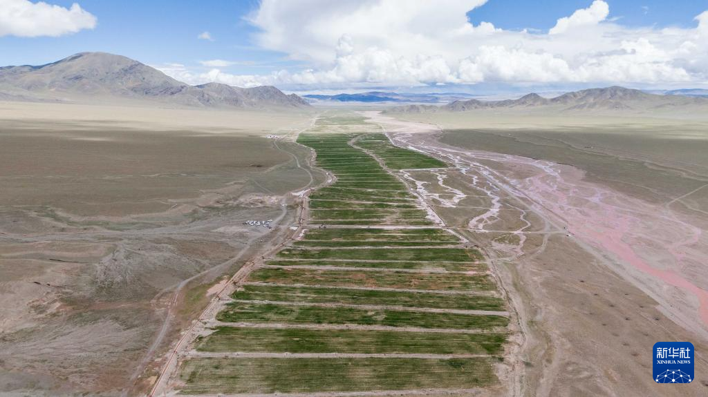 西藏阿里地区革吉县文布当桑乡人工种草基地一景(7月20日摄,无人机照片)。新华社记者 旦增尼玛曲珠 摄