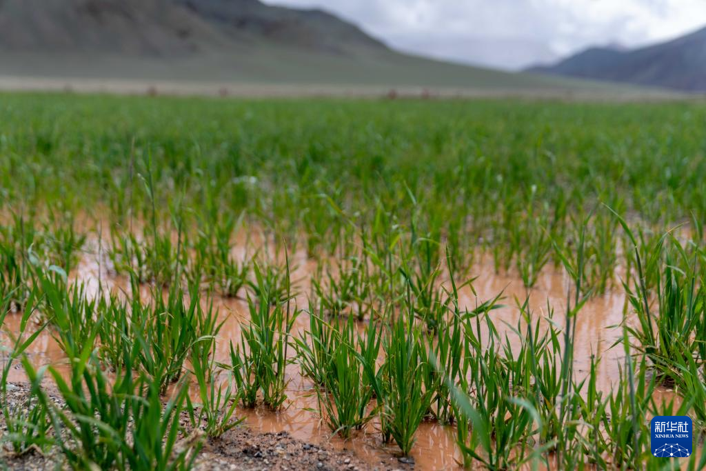 这是7月20日在西藏阿里地区革吉县文布当桑乡拍摄的人工种草基地。新华社记者 旦增尼玛曲珠 摄