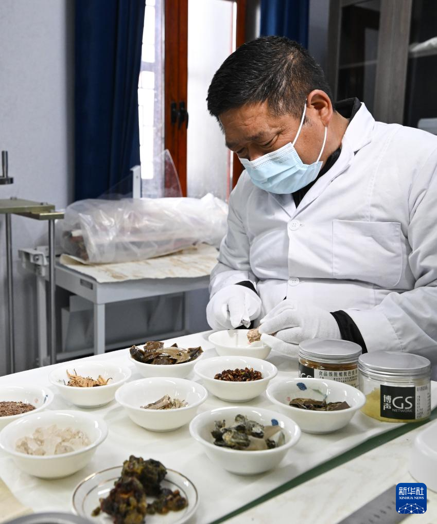 布达拉宫贝叶经实验性修复小组实验室工作人员对用于贝叶修复的粘合剂原料进行加工(5月25日摄)。新华社记者 李贺 摄