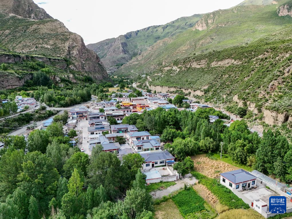 这是7月21日拍摄的西藏林芝市朗县仲达镇拉丁雪村(无人机照片)。新华社记者 李鑫 摄