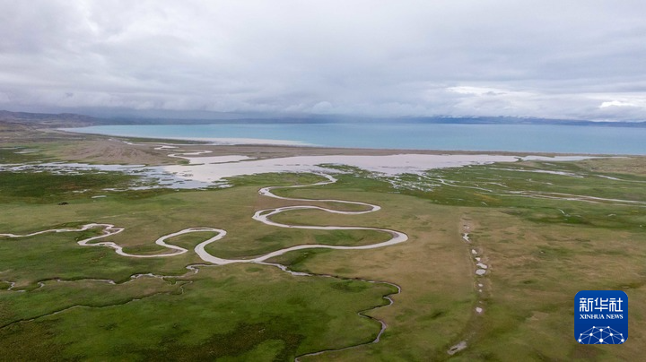 2025年7月22日拍摄的玛旁雍错湿地一景(无人机照片)。新华社记者 旦增尼玛曲珠 摄