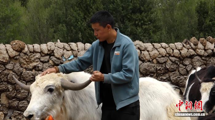 图为达娃格桑为自己精心养殖的“娘亚”白牦牛梳毛。贡桑拉姆 摄