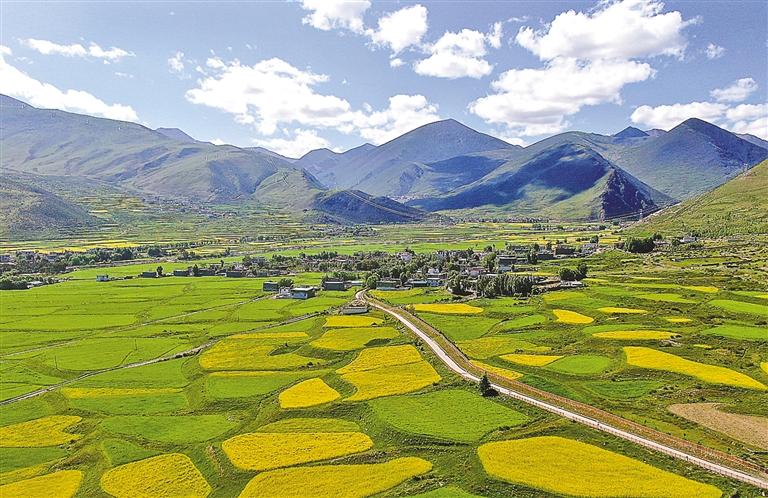 从空中俯瞰,纵横交错的乡村公路在广袤的高原上绘就壮美画卷。这些公路不仅是交通线,更是致富线、幸福线,承载着高原人民对美好生活的向往,见证着乡村振兴的坚实步伐。在阳光照耀下,条条公路如同大地的血脉,为雪域高原注入新的生机与活力,铺就了一条通往全面小康的康庄大道。