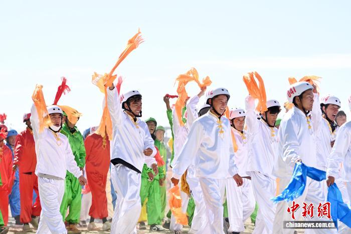 图为开幕式现场赛马选手入场。中新社记者 九美旦增 摄