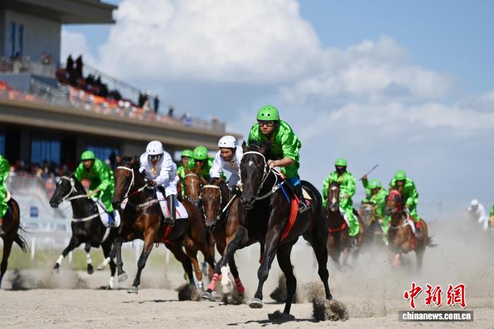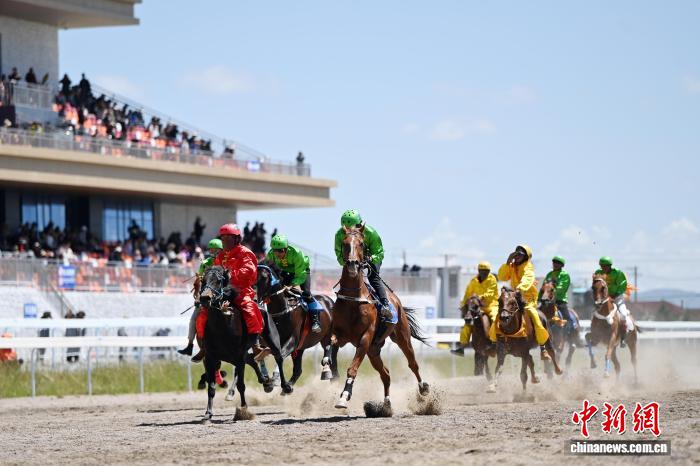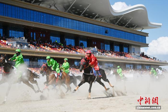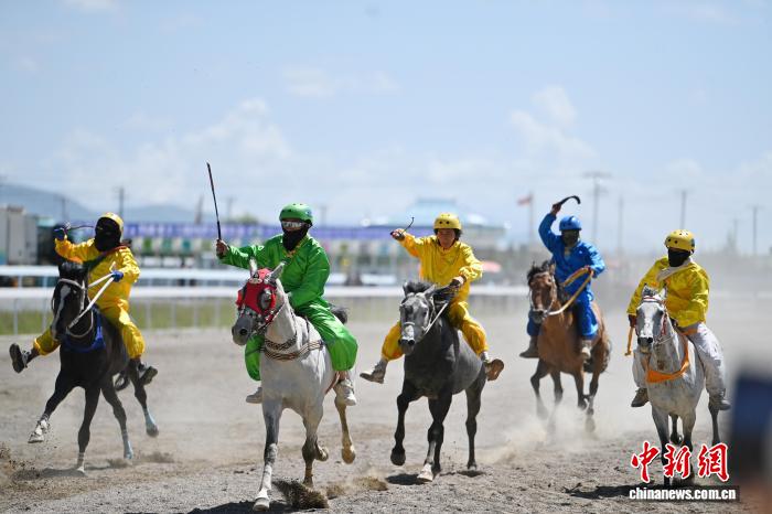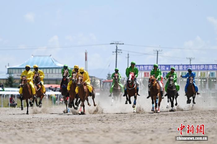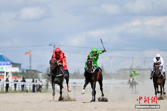 图为赛马选手在格萨尔赛马中心比赛中。中新社记者 九美旦增 摄