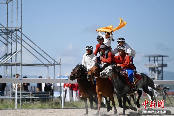 图为开幕式现场马术表演。中新社记者 九美旦增 摄