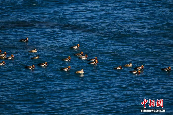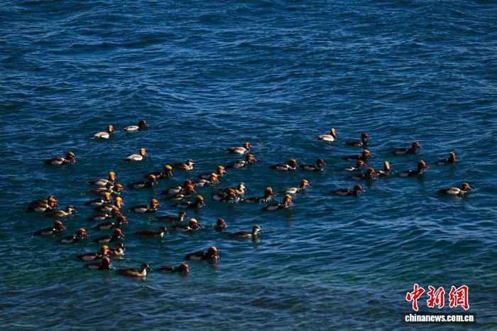 图为在羊卓雍错越冬的赤嘴潜鸭。中新社记者 贡嘎来松 摄