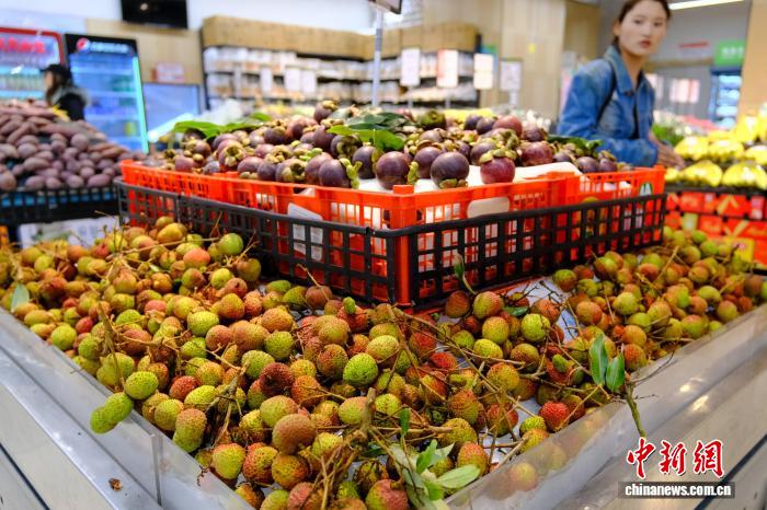 资料图为2025年5月27日,西藏拉萨一连锁超市销售来自海南的“妃子笑”荔枝。江飞波 摄