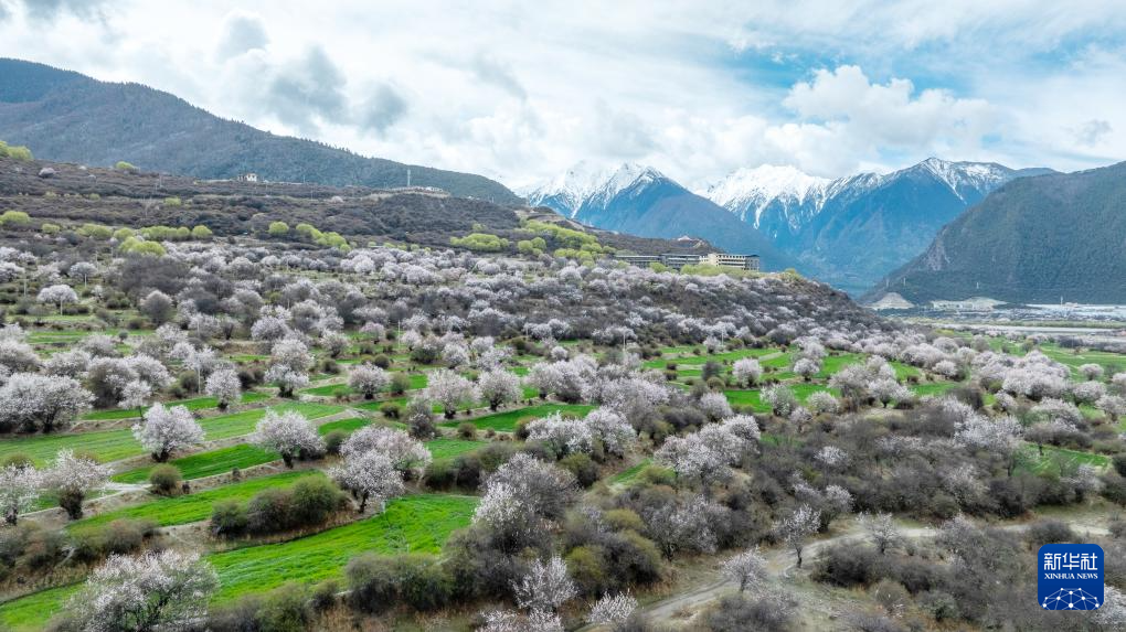 这是4月2日在林芝巴宜区朵当村拍摄的桃林(无人机照片)。新华社记者 丁增尼达 摄