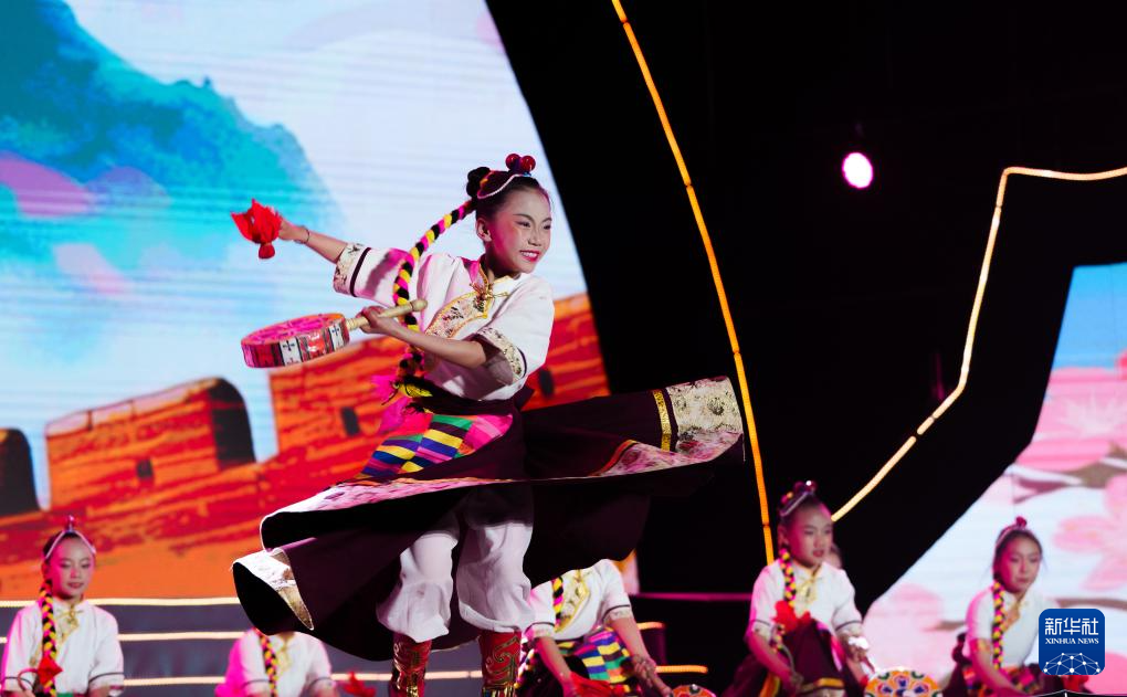 这是4月3日拍摄的林芝第二十三届桃花旅游文化节开幕式文艺演出现场。新华社记者 丁增尼达 摄