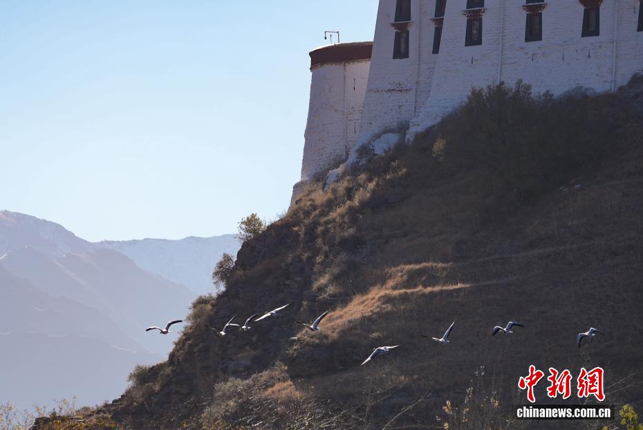 11月17日,西藏拉萨迎来大批越冬候鸟。拉萨河、宗角禄康公园等地,成为了它们的栖息天堂。在宗角禄康公园内,赤麻鸭、斑头雁成群结队,时而低头觅食,时而水中嬉戏。它们的身影引得市民和游客纷纷驻足观赏、拍照留念,构成了一幅人与自然和谐共生的美丽画卷。图为斑头雁与布达拉宫同框。贡确 摄