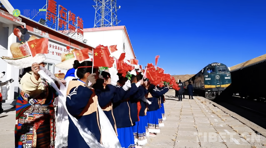 12月11日,陕西西安,满载30车食品、日用品、建筑材料等货物的X385次“长安·天路”进藏班列从西安国际港站出发,一路向西开往西藏拉萨、日喀则。