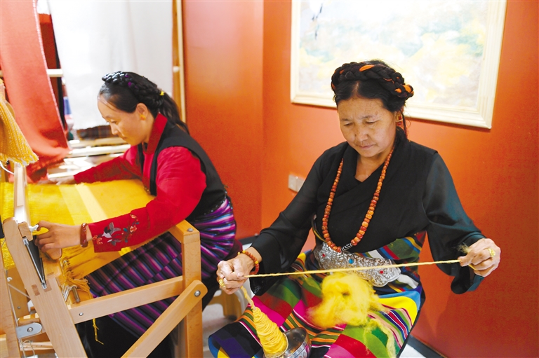 近年来,在上海市第十批援藏江孜小组的支持下,江孜县打造氆氇制作的“前店后坊”模式,将现代技术融入传统工艺中,在江热乡班觉伦布村设立“阿佳格桑工坊”。