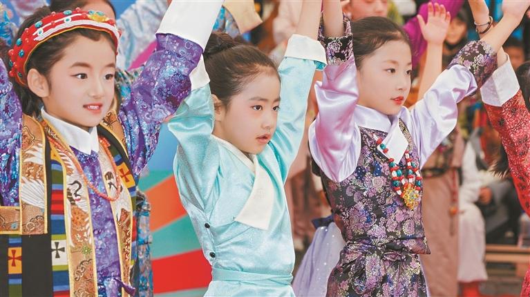图为活动现场,小朋友正在表演节目。记者 袁海霞 摄