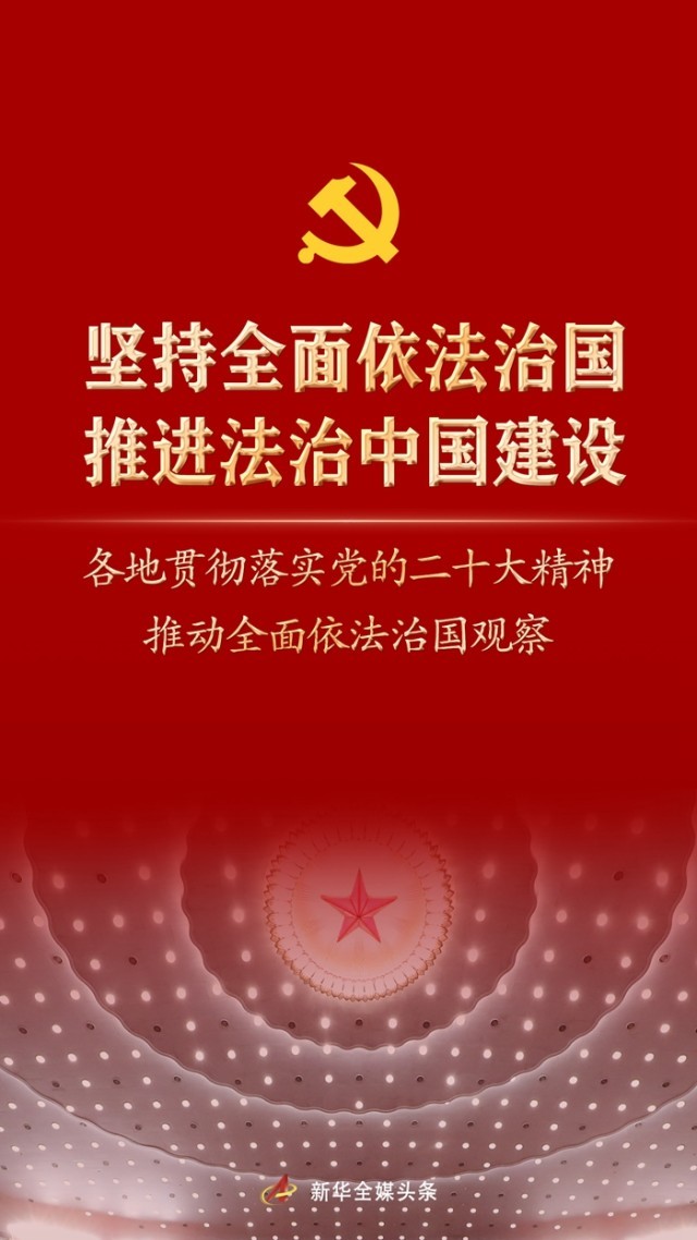 连日来,新华社记者在一线采访看到,各地在坚持全面依法治国,推进法治中国建设的实际行动中,贯彻落实党的二十大精神,全面推进国家各方面工作法治化。