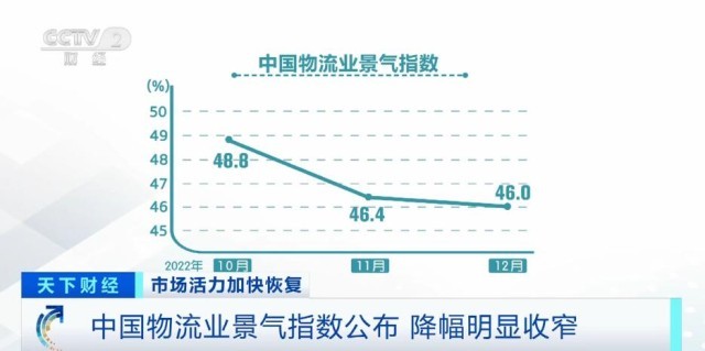 央视网消息:中国物流与采购联合会今天(1月4日)公布2022年12月份中国物流业景气指数。受到疫情的短期冲击,物流供应链受到一定程度的扰动,城市配送、电商快递受影响较大。后期随着疫情防控政策持续优化,疫情影响减弱,预计产业链恢复节奏将逐步加快,需求端逐步回稳向上,行业复苏进程有望明显改善。