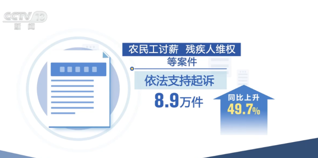 央视网消息:2022年,检察机关主动回应老弱病残、困难群体所急所盼,对农民工讨薪、残疾人维权等案件依法支持起诉8.9万件,同比上升49.7%。参与集中整治拖欠农民工工资专项行动,起诉恶意欠薪犯罪1110人。最高检要求,2023年,检察机关要继续做好民生司法保障,依法办理涉及劳动纠纷、就业纠纷的民事行政监督案件,有效保障就业者、劳动者合法权益。