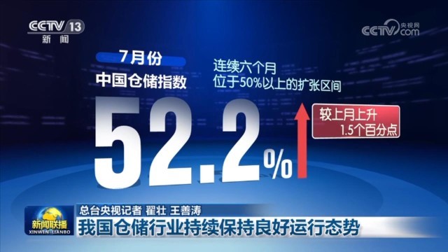 中国物流与采购联合会2日公布,今年7月份,中国仓储指数为52.2%,连续六个月位于50%以上的扩张区间。数据显示,仓储企业生产经营活动活跃,业务量明显增长,企业对市场前景保持乐观。