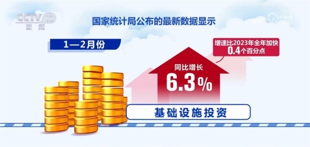 随着增发国债项目的落地实施和支撑灾后应急恢复重建资金的陆续下达,基础设施投资增速小幅回升。国家统计局公布的最新数据显示,1—2月份,基础设施投资同比增长6.3%,增速比2023年全年加快0.4个百分点。其中,水利管理业投资增长13.7%、教育行业投资增长12.1%、基础设施等民生补短板投资保持良好增长态势。