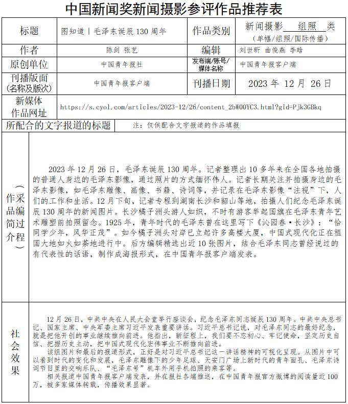 中国青年报社推荐参评第34届中国新闻奖新闻摄影作品专项初评公示