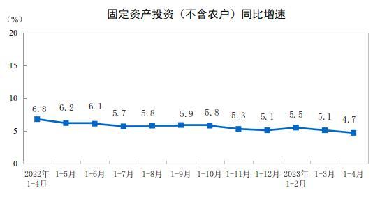 国家统计局:2023年1-4月份全国固定资产投资增长4.7%