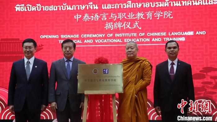 当地时间3月21日,中泰语言与职业教育学院在泰国曼谷揭牌。该学院由中国教育部中外语言交流合作中心与泰国教育部职业教育委员会共同建设。 中新社发 王贤思 摄