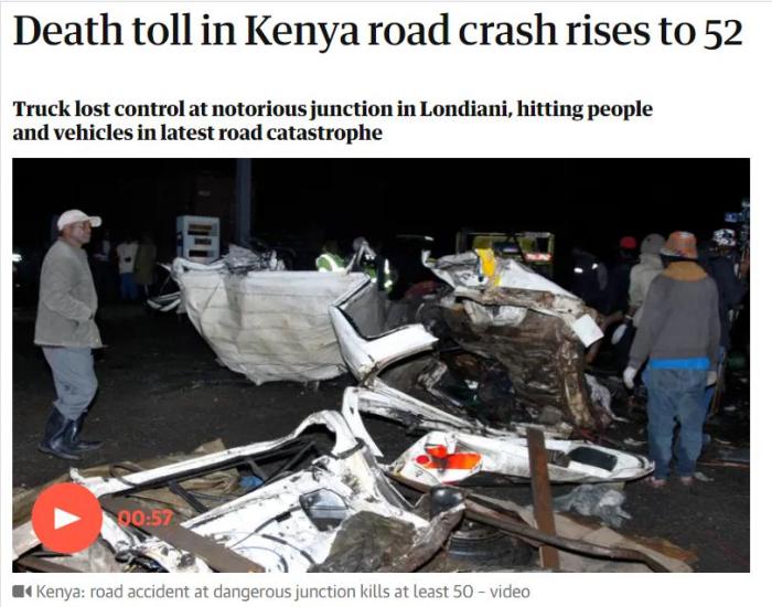 肯尼亚一卡车“失控”撞向附近车辆人群 已致50余人死