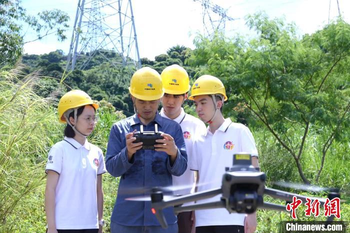 在南方电网公司深圳供电局实习的港澳台大学生学习开展无人机巡视作业。(南方电网供图)