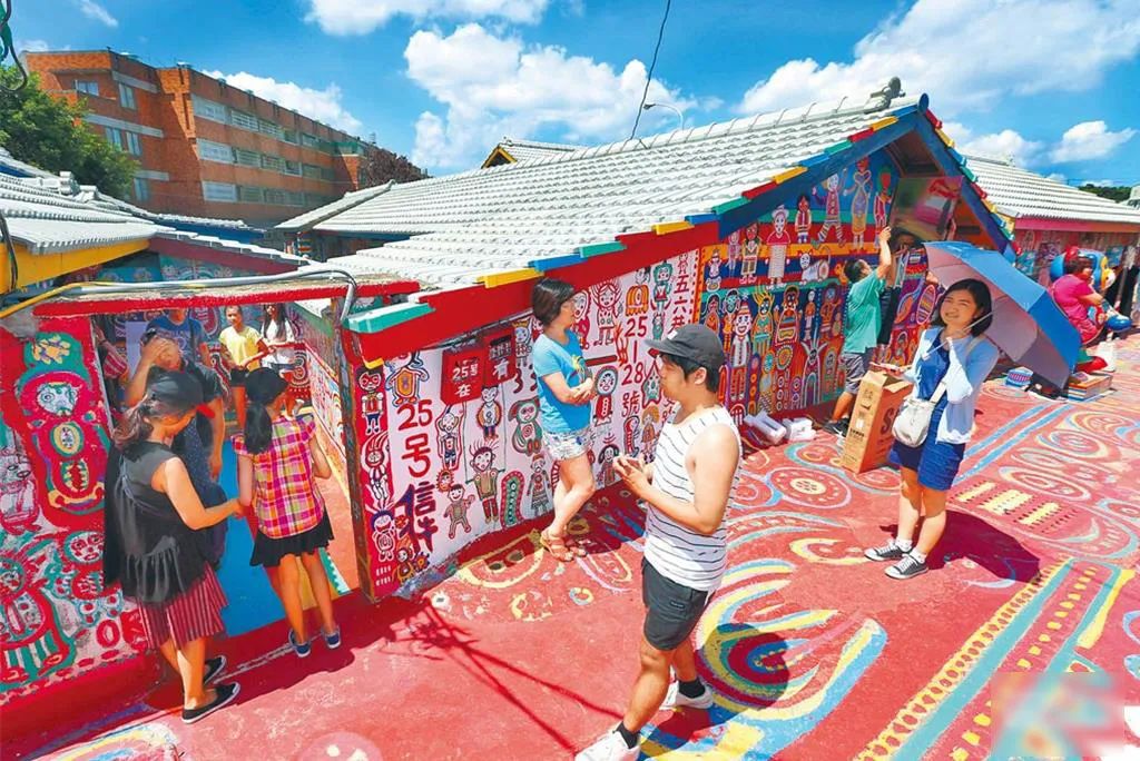 五彩缤纷、充满童趣的画风让老旧眷村增添了生机,每逢节假日,大量民众前来参观打卡。图片来源:中时新闻网