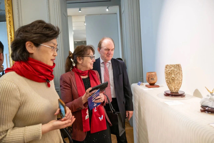 法国吉美博物馆馆长林茨表示,巴黎中国文化中心和吉美博物馆同是在法宣传中国文化的重要使者。今年也是吉美博物馆的中国文化主题年,博物馆将在六月至九月期间举办一场关于中国单色釉瓷器的展览。希望进一步加强中法文化合作与艺术对话,为中法文化旅游年添彩。为此,林茨馆长也和来自景德镇的艺术家们进行了沟通。在参观本次展览之后,林茨馆长感到景德镇当代的陶瓷文化日新月异、蓬勃发展,很多内容是她此前没有想到的,艺术家们的艺术理念与世界接轨,做得非常好。